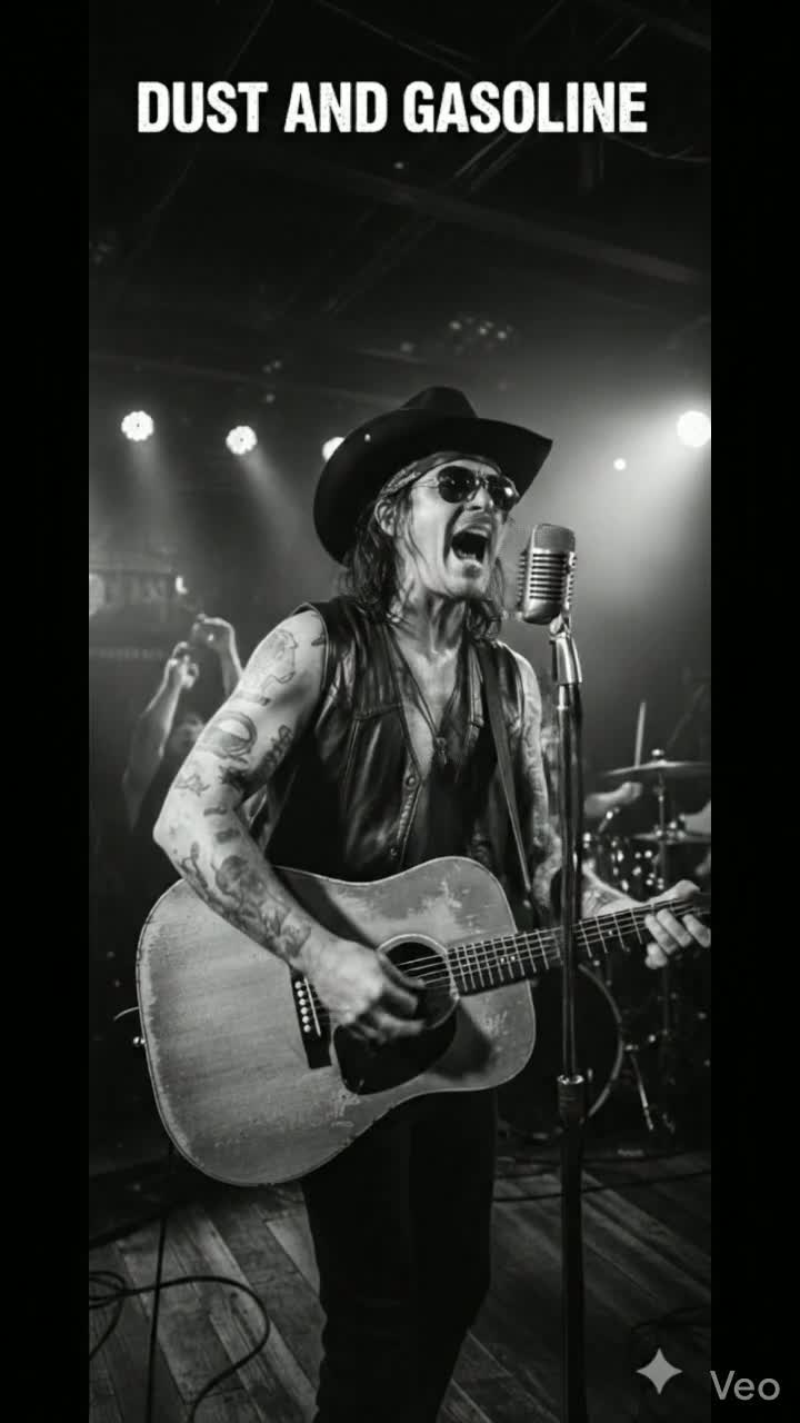 Prompt: High-energy Modern Country Rock, Dark Americana, Outlaw Folk, 170 BPM, Fast aggressive "train-beat" rhythm, Male dramatic tenor vocals, powerful whiskey-soaked rasp, soulful piercing belting, intense operatic vibrato on high notes, breathy storytelling verses, Vocal-forward, raw analog grit, No synths, Instrumentation: Overdriven Telecaster twang, aggressive acoustic guitar strumming, slide guitar wails, heavy percussive upright slap-bass, Fast "Stomp and Holler" drums, explosive snare and cymbals, Structure: Melancholic dusty verses transitioning into explosive anthemic choruses, Manic, rebellious, and theatrical live house energy, 1970s Outlaw studio sound