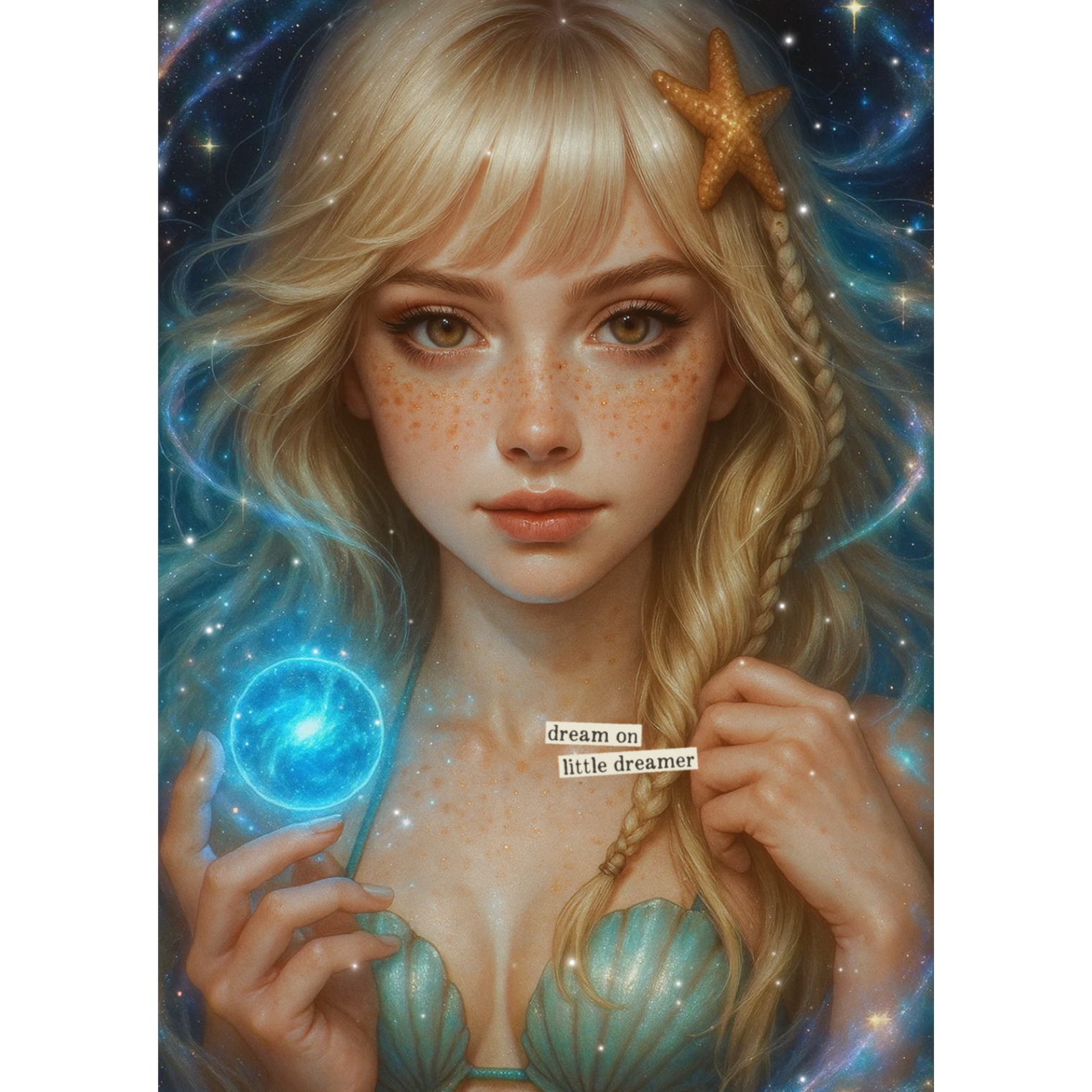 A fusion of MPB with electronic and psychedelic elements, creating a mystical and introspective atmosphere, The rhythm should be soft, with organic percussion typical of MPB (like atabaques and pandeiro), mixed with floating synthesizer pads and spatial effects, The vocal melodies should be ethereal, almost whispered, in harmony with the electronic sounds, The lyrics should explore themes of spirituality, nature, and cosmic connection, creating a sense of journey between the real and the surreal, The sound should be immersive, deep, and experimental, with textures evoking a feeling of being between the waters and the stars