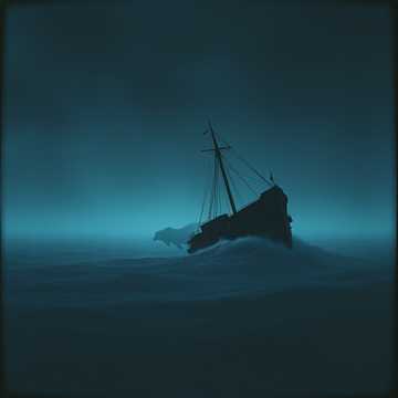 Dark, ominous seafarer’s ballad inspired by The Dark Eye (DSA), Atmosphere: heavy, foreboding, oceanic dread, the feeling of being watched from the abyss, Vocal style: deep, weathered male vocals, whispered accents, echo-like background chants, Instrumentation: slow drums like distant war-beats, bowed strings, low drones, creaking ship timbers, waves, storm ambience, Tone: fatalistic, supernatural, cursed, with hints of maritime folklore, Lyrics in German, focusing on: