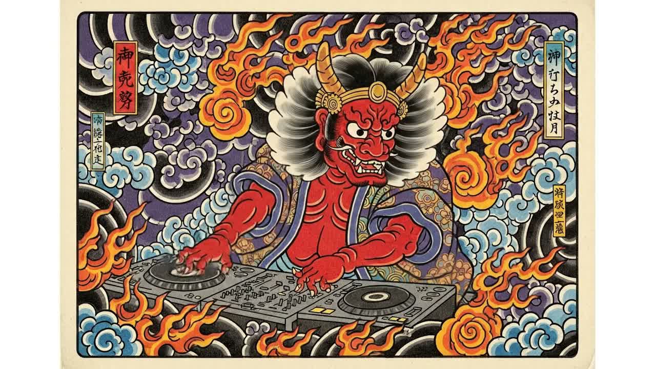 Traditional Japanese instruments, Shamisen, Koto, Fast-paced, Energetic, Quirky rap, Female Vocal, anime, pop