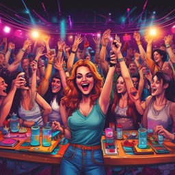 Pumping happy hardcore track starts with a rapid-fire kick drum and bright, syncopated synth stabs, Playful, bouncy basslines propel the verses, building to euphoric, hands-in-the-air choruses layered with soaring trance leads and quick hi-hat patterns, Energetic drops and short vocal chops maintain momentum