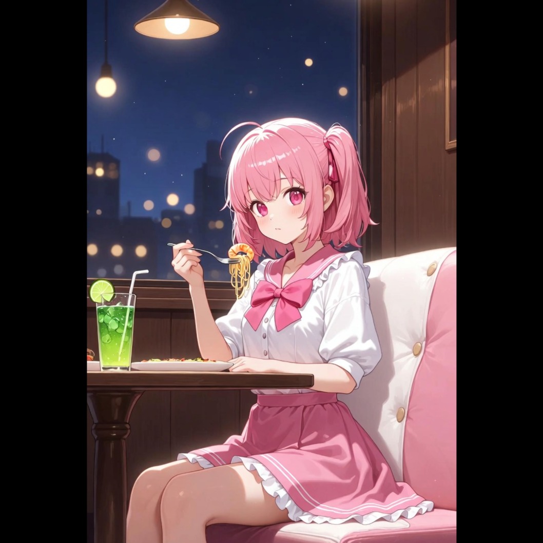 Vocal: JP female layered fixer, ghostly breath tone, airy and soft with delicate vibrato, slight vocaloid flavor, dry right-channel whisper ad-libs, Genre: Folktronica / Jersey Club / glitch hop with lo-fi cinematic texture, light morning atmosphere, playful sweetness like honey-dusted loukoumades, Sound: Detuned synth drones as warm pads, broken music box and reversed harp plucks for whimsical sparkle, tape-saturated bass, subtle toy piano, Rhythm: Drifting tempo, fragmented phrasing, asymmetrical bars, gentle pauses like the drifting aroma of honey in morning air, FX: Vinyl hiss, analog flutter, microtonal pitch wobble, light reverse laughter panning, silence gaps used as rhythm, Avoid: glossy compression, overly clean tone, symmetrical structure, heavy reverb