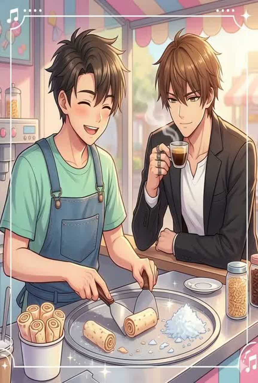 Playful Electro-Swing, Café Jazz Toypop, Italian dessert lounge vibe, Jersey Future, sweet and playful male vocal, finger snap rhythm, light brass section, jazzy piano riffs, candy-colored retro swing groove, cozy café atmosphere, dessert-making rhythm vibe, romantic playful mood, BPM 159, viral dessert music, catchy hook, playful rhythm, TikTok friendly groove
