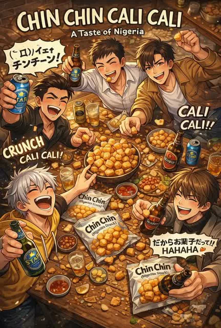 Layered vocal harmonies emphasizing “Chin Chin!” and “Cali Cali!” hooks