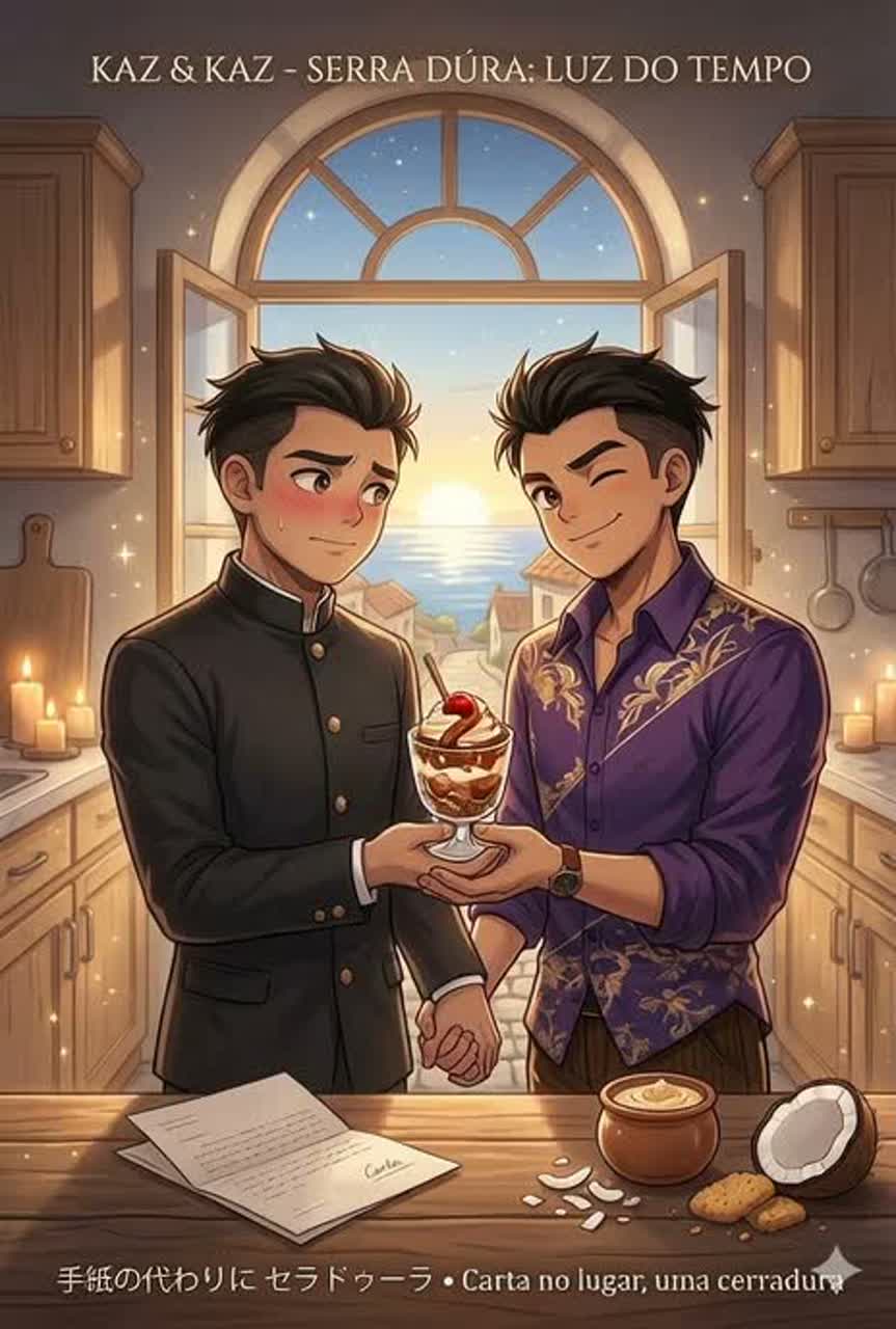 nostalgic jersey sweet tribaltronica summer vibe, 15-year-old boy and girl running up a sunlit hill, ocean breeze and wet soil smell in the air, soft golden hour lighting, pastel sky blending with distant clouds, hands almost touching, playful and dreamy atmosphere, subtle motion blur for dynamic feeling, delicate highlights on hair and eyes, sweet dessert motif (ceradura-inspired swirl pattern in the background), cinematic perspective, soft bokeh, anime style, high detail, vibrant yet soft colors, whimsical and tender mood, BPM 171, middle fast, Downtempo Amapiano