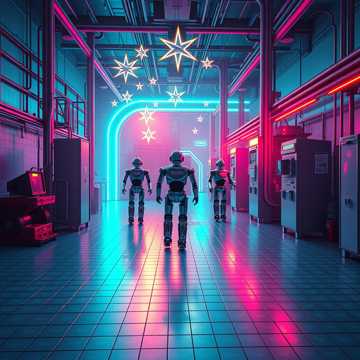 Kraftwerk-style mechanical minimalism, early electro sound, Moog bass pulse, vocoder voice, analog synths with tremolo and auto-pan, metallic percussion, hypnotic monotone groove, glitch and system error ending, experimental sound design, studio-quality analog mix, wide stereo image, no vocalisation in intro