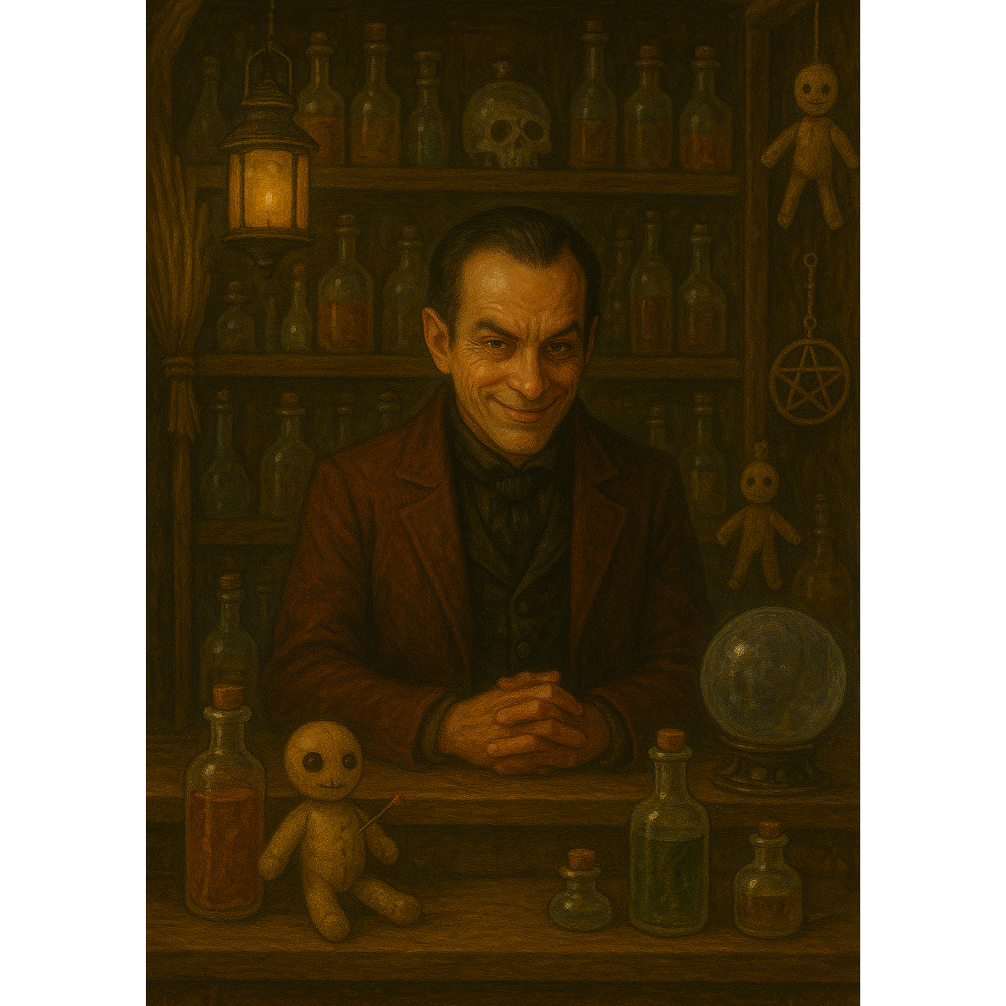 This song drips with the atmosphere of a devil’s cabaret, where the Devil himself presides as shopkeeper and showman, At its core lies the organ, groaning and roaring like a cathedral turned upside down, Its deep, rolling chords summon dread, while sharp, playful runs dance like mocking fingers across the keys, The organ doesn’t just accompany—it dominates, swelling and collapsing like hellfire disguised as music, A delicate glockenspiel shimmers above it, deceptively innocent, like children’s laughter echoing in a graveyard, Together they weave a soundscape that is unholy, seductive, and theatrical: half carnival, half ritual, The music feels like a pact—each note a promise, each chord a trap—that pulls the listener deeper into the Devil’s magic shop