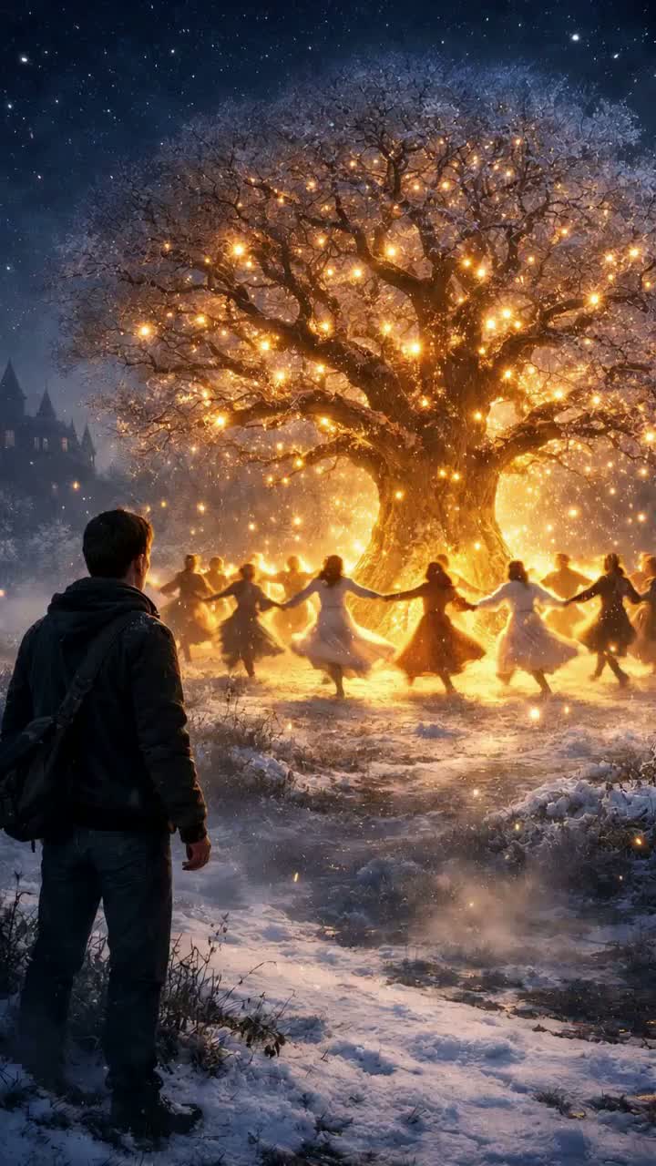 The song opens with a magical, ethereal atmosphere, using soft flutes, celesta, and gentle harp arpeggios to evoke the glowing lights around the mighty oak, Light, folk-inspired rhythms with violin and accordion carry the first verses, giving a sense of festivity and the bustling celebration, The chorus bursts into a lively, dance-like 3/4 rhythm, blending playful strings and subtle percussion to mimic the swirling dancers around the tree, As Durs discovers the hall and the book, the music darkens, introducing low strings, oboe, and haunting drones to build tension, Sudden pauses and minor chords underscore the eerie disappearance of the revelers, emphasizing suspense and uncertainty, The final verses mix the magical and ominous tones, reflecting Durs’ entrapment in the thorny hedge with glockenspiel and soft, dissonant harmonies, The outro fades with a sparse harp and distant chime, leaving a lingering sense of mystery and wonder