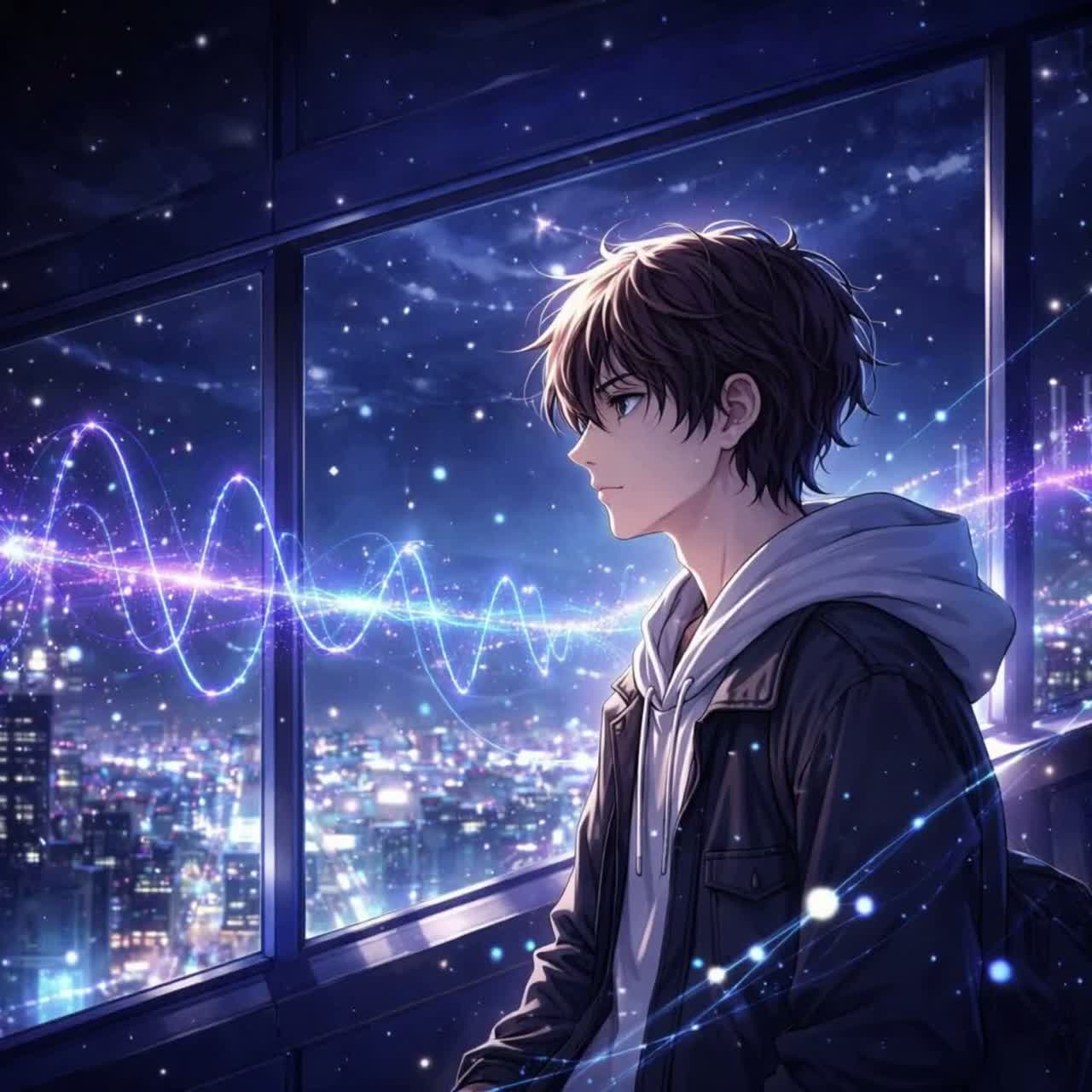 1980s Japanese Synth Pop Ballad / Melancholic Ani-song, Vast, melancholic, and epic mood with a distinctive 80s electronic texture, BPM 108, Achieve a powerful, resonant, and softly 'muffled' 80s sound, The entire track must evoke the distinct sound of 1980s Japanese Electronic Bands, Instrumentation must feature Warm Analog Synthesizers with a deep, resonant, 'humming' quality, Apply a subtle Low-Pass Filter to the overall mix to create a softly 'muffled' or smooth texture, reducing harsh high frequencies, Use lush, sustained Synth Pads, prominent Arpeggiated Synthesizer patterns, and a gated reverb effect on the snare drum, The bassline should be melodic and driving, Focus on clear, spacious mixing to emphasize the vastness of space, Include a dramatic, soaring synth solo section, VOCAL: Nostalgic, Emotional, and Natural Male Vocalist, The voice must be clear, passionate, and powerful, primarily using a natural Chest Voice, AVOID Falsetto or overly trained/operatic vocal styles