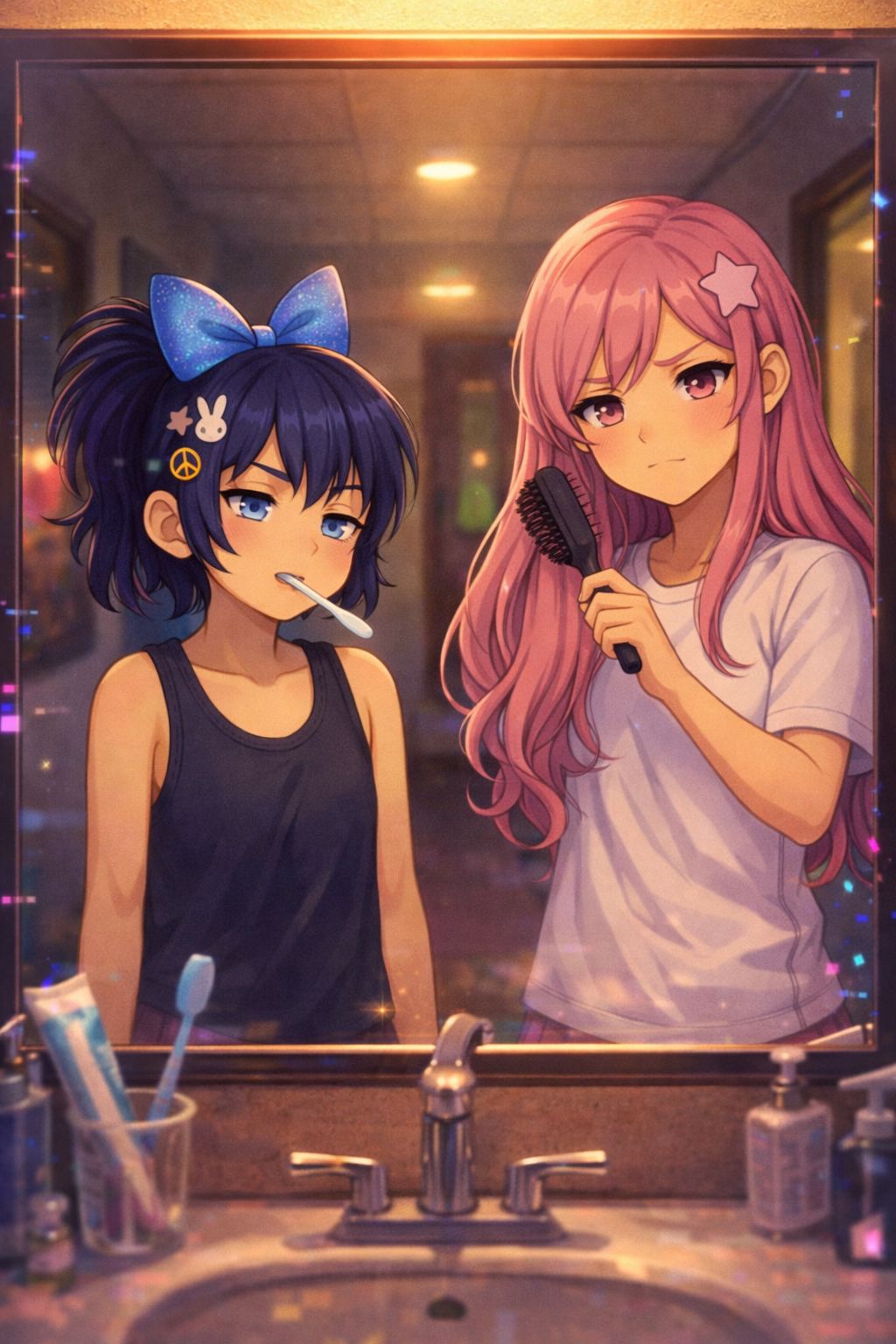 [[too cute to comply, too centered to scatter, dual かわいい萌え female vocals — bloom voice grounded and steady at center; spark voice bright and articulate at edge; interplay active and equal; neither ornamental, neither backgrounded, sparkcore MOS 6581 mid-bass — squarewave pulse tactile and visible; groove established immediately; rhythmic spine continuous, bratwave swing kinetics — syncopated pocket; percussive phrasing; motion drives energy, glitchgospel charge lift — harmonic suspension carried through stacked female vocals; lift achieved through density and held tone, mirrorcore eye-level staging — female vocals front and direct; contact present; articulation clear, tantrum-drive rhythm lattice — kick/snare in live dialogue; escalation through rhythmic density and vocal stacking, specific, embodied, kinetic, declared, ]], ‑Maintain dual female vocals as distinct and independently perceivable voices; do not merge into blended unison or choral smear, ‑Preserve contrast between bloom (center mass, ‑grounded tone) and spark (edge articulation, ‑brighter attack); roles remain audible, ‑not averaged, ‑Prevent harmonic stacking from collapsing into homogeneous pad texture; intervals must remain discernible, ‑Retain MOS 6581 mid-bass attack clarity; no transient rounding that obscures rhythmic articulation, ‑Avoid atmospheric pad dominance; spatial elements support structure without veiling vocal detail, ‑Preserve syncopated pocket integrity and forward kinetic lean, ‑Maintain micro-dynamic variance in phrasing; avoid uniform loudness compression across vocal layers, ‑Escalation through density and articulation, ‑not through ambient swell, ‑Distinct, ‑Specific, ‑Unblurred