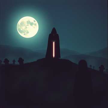 Warm power metal at 155 BPM in E minor, Deep bass, rich mid-range keyboards, smooth vocals, Avoid bright synths and piercing leads, Balanced frequencies - strong lows and mids, controlled highs, Emphasize groove over technique, Vampire hunter theme with epic, dramatic atmosphere but warm, rich tones instead of harsh treble