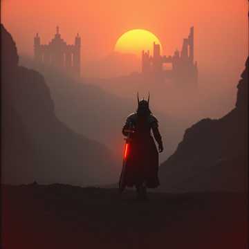 Epic fast power metal song around 205 BPM in E minor, High-energy double bass drums, rapid palm-muted guitar riffs, harmonized twin lead guitars, neoclassical shredding solos, melodic bass following guitar roots, and epic keyboard layers supporting the harmony, Long instrumental intro and extended solo section, Male vocals, natural and human, heroic and melodic, strong mid-range with controlled highs, no excessive screaming, no harsh distortion on voice, Chorus grand and uplifting with layered backing vocals, Production should feel powerful, clear and energetic, studio-quality, emphasizing speed, melody and epic fantasy atmosphere, Lyrics tell a heroic journey through darkness, sacrifice and inner strength