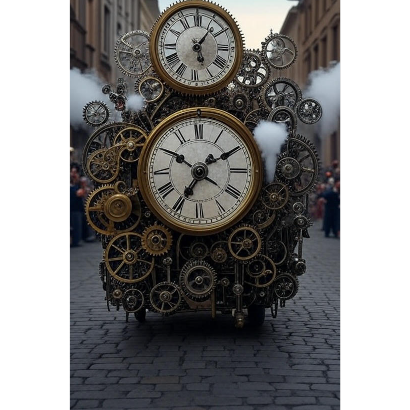 This dark steampunk orchestral march opens with dense clockwork percussion—ticks, tocks, whirring gears—layered over a low synth drone and distant ambient machinery, Verses feature cinematic male vocals atop ominous strings and pulsing drums, gradually introducing brass swells, Pre-chorus heightens tension with brass blasts, while music box or harpsichord subtly lace the shadows, The chorus erupts in sweeping orchestra and thunderous percussion, evoking a grand, relentless march, The bridge amplifies mechanical textures; the outro weaves fading mechanical noise and gentle music box as fate and time dissolve, maintaining an epic, bittersweet atmosphere