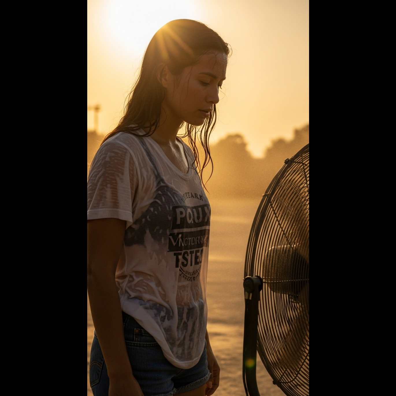 Create a groovy, sticky electro-funk / tropical dark pop song based on the Slovak lyrics "Spotené tričko" (Sweaty Shirt), The song should feel like summer heat turned into music: humid, claustrophobic, and absurdly funny, Imagine a funky synth groove melting in the sun, with rhythmic sweating and fan noises in the background, The vocals are semi-spoken, semi-sung, like a delirious monologue in 38°C heat, Add layered synths, punchy basslines, handclaps, dripping effects, and ironic backing vocals, Think Daft Punk meets Glass Animals in a sweaty Eastern European apartment with a broken fan, Chorus should feel catchy and stuck like a wet T-shirt, Keep the rhythm steady and sticky, Optional: occasional horror elements like eerie pads or reversed breaths, Vocal delivery should sound exhausted but committed – too hot to care, too funky to stop