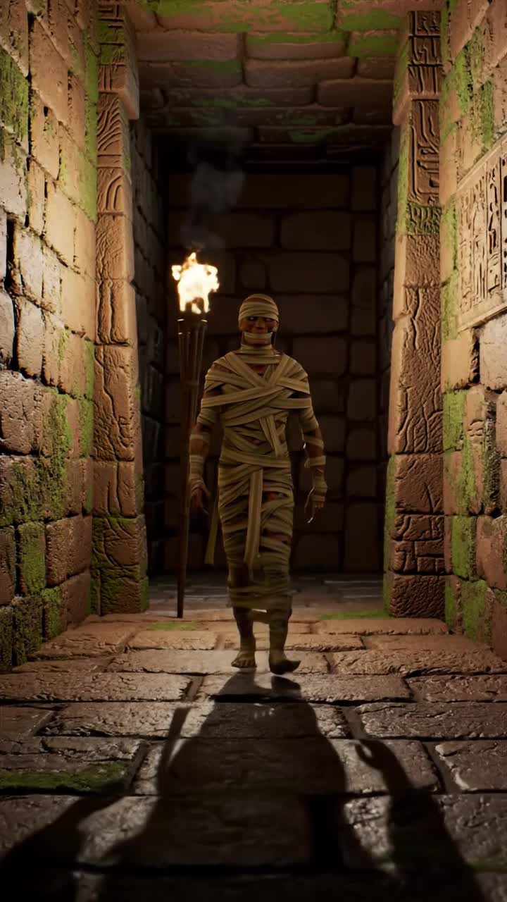 A dark cinematic ambient soundtrack unfolds with deep male vocals layered over vast pads, subterranean drones, and spectral synths, Whispering children’s choir echoes (key phrases) in the distance, amid tribal percussion, chimes, and ghostly effects, Slow, suspenseful, and immersive, it conjures ancient, echoing corridors with wide reverb and dynamic buildups dissolving into shadowy, soft ambient breaks