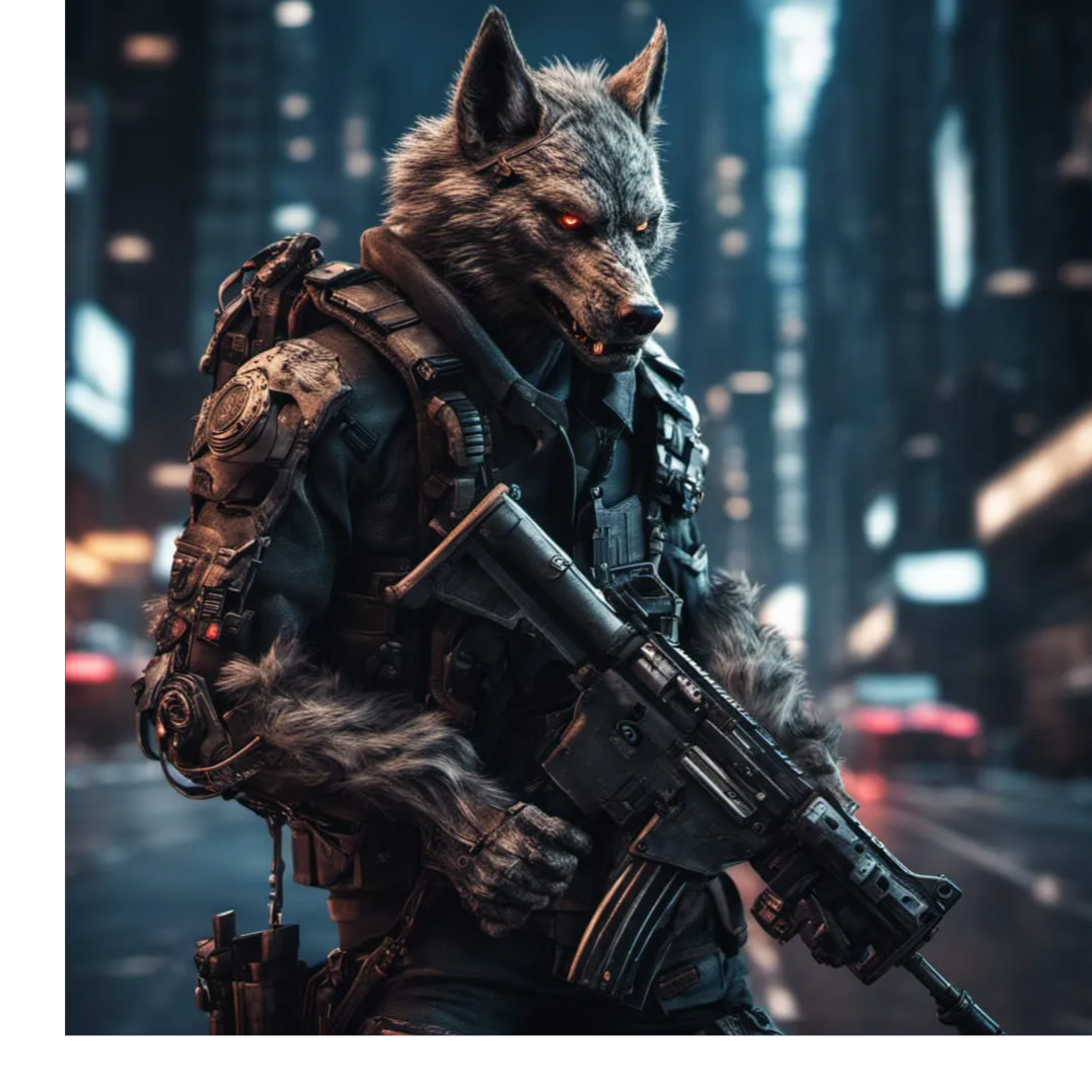 a fusion of hard rock and heavy metal from the 80's, with defiant and cautious vibe, distorted riff guitars, monster bass, spooky and yet melodic synths, mid-high male vocals, anthemic chorus, pounding drums with slight echo, wolf howl's effects