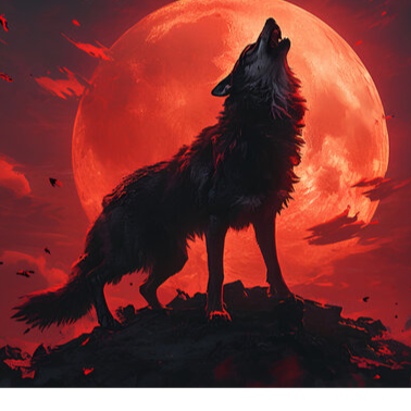 intro with eerie synth pads and wolves howling, 5 minutes glam rock, 80's hair rock, heavy metal, progressive, high pitch male melodic vocals, anthemic chorus, distorted guitars, catchy riff guitar, epic guitar solo, punchy bassline, synthesizers, synth pads, hard pounding drums for thunderous feeling