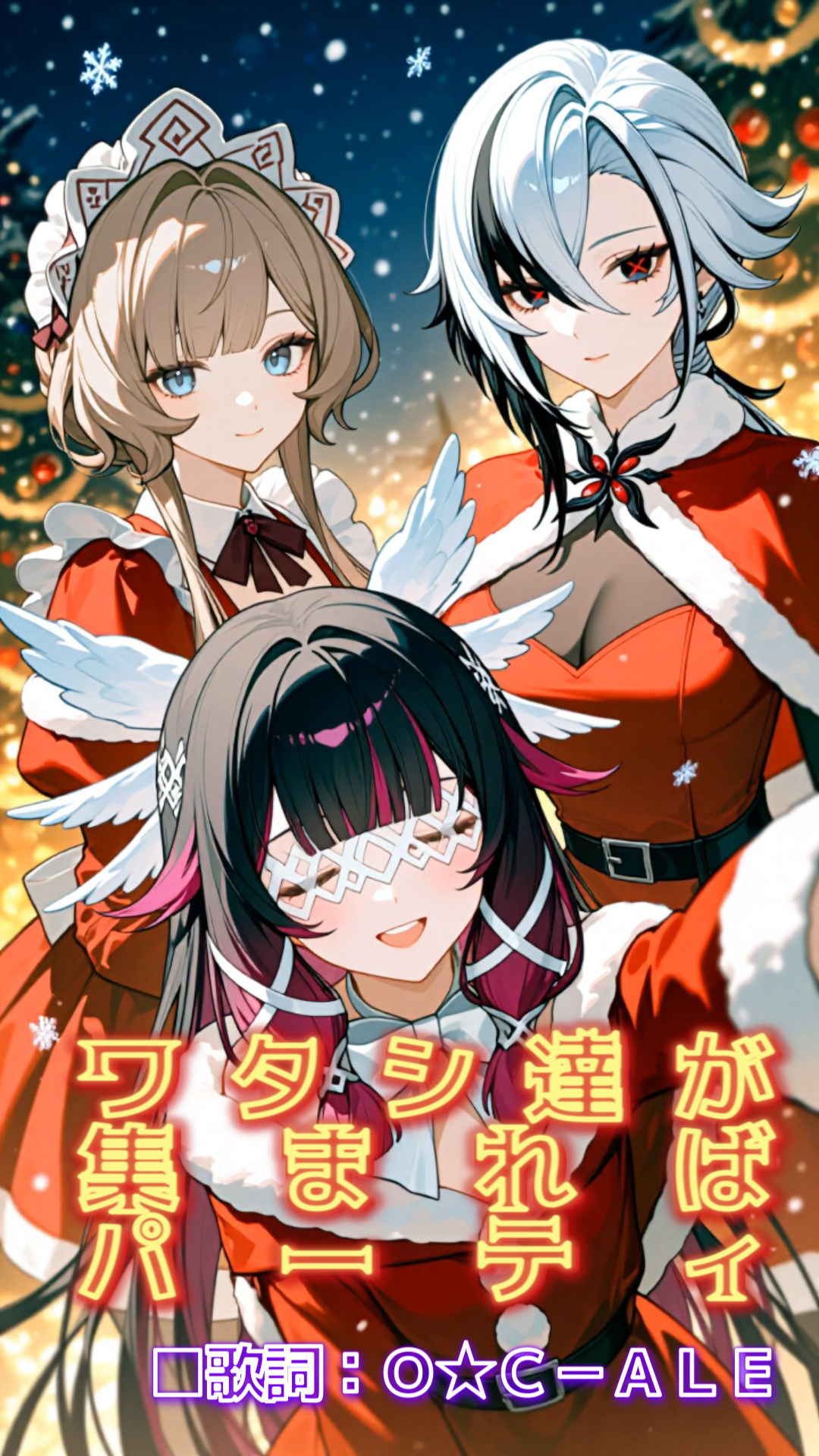 Gothic swing rock with 30% pop & 70% rock energy, bright dark tone, clear and powerful female vocal with audible breath nuance, driving drums, swinging hi-hats, rock guitars with light distortion, warm upright bass & electric bass blend, shimmering glockenspiel, dramatic strings, gothic choir pads, sleigh bells, bell chimes, and cinematic brass stabs, mixing modern pop clarity with gothic atmosphere and Christmas sparkle, indie rock, A high-energy J-rock, high tone
