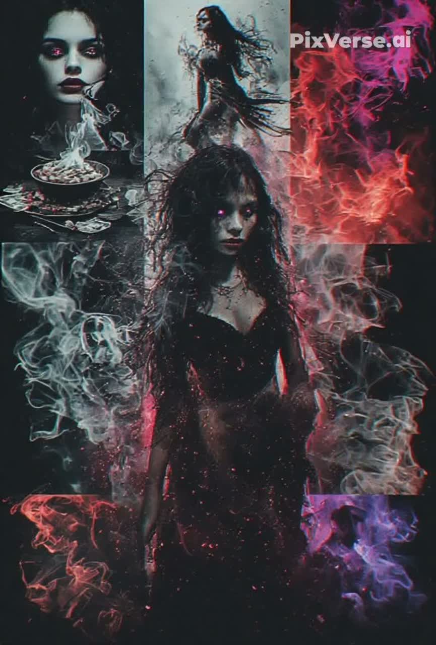 dark Latin trap-pop, wiccan-pop, minor-key piano chords, muted brass swells, moody bassline, congas, shakers, low toms, ritual drum accents, trap snare, airy vocal pads, reversed cymbals, whispered harmonies, shimmering bells, chime textures, smoky vocals, plate reverb, stereo delay throws, layered whispers, dramatic chorus, swelling brass, dark synth drones, tension builds, reverse FX, ethereal fills, midrange clarity, tight low-end, stereo percussion, atmospheric layering, hypnotic vocals, cinematic arrangement