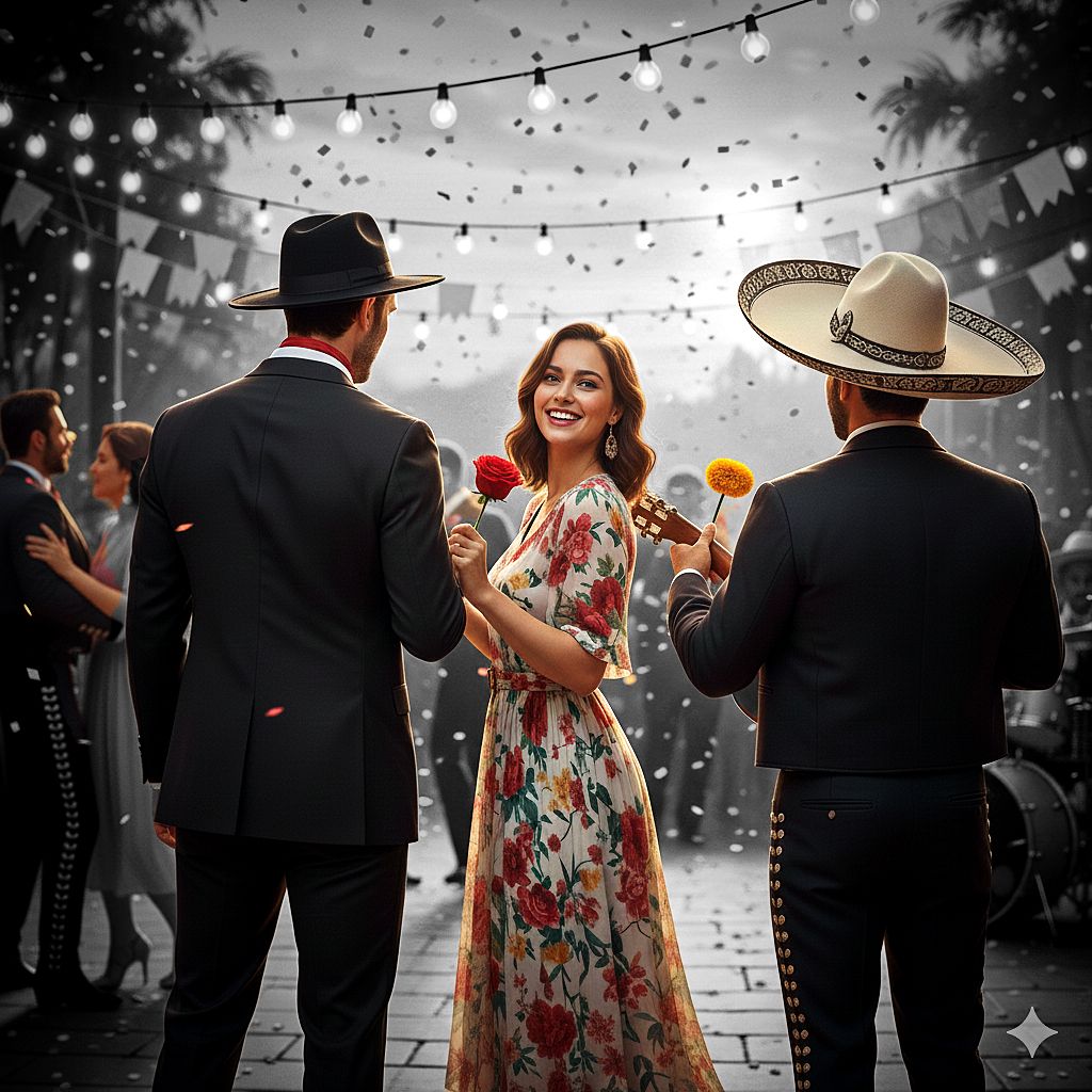 and emotional male vocals, mariachi, trumpets, rich with acoustic guitars, pop, dynamic rhythm blending pop-rock and mariachi, rock, sentimental