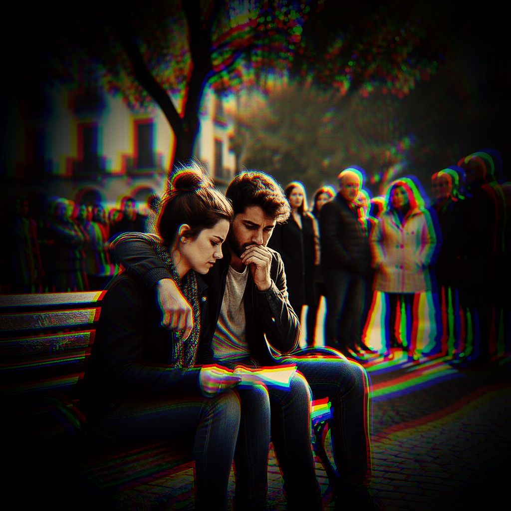 rock, latin rock/pop ballad, emotional rhythm, male vocals, a heartfelt arrangement with a blend of acoustic guitar, piano, and subtle percussion, builds intensity in the chorus with layered harmonies and a soaring vocal delivery, melancholic yet dynamic instrumentation to reflect the emotional conflict, pop