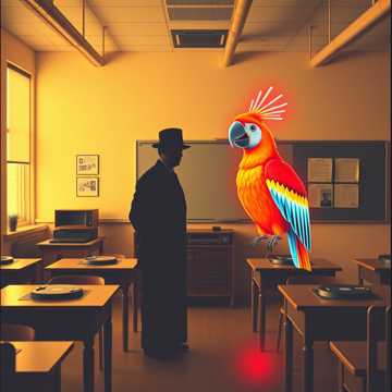 The track begins with a high-fidelity vinyl crackle and a warm, dusty sample of a stern 1950s schoolmaster speaking to a distraught woman, layered over a quirky, staccato orchestral sample, A downtempo hip-hop breakbeat kicks in with heavy swing, punctuated by cartoonish sound effects like slide whistles, gunshots, and distinct, loud PARROT SQUAWKS, The production style is Plunderphonics and Turntablism, featuring aggressive record scratching and distinct "sample flipping" where voices change pitch and timber rapidly, The verses are a dialogue between a deep-voiced authority figure and a nervous, high-pitched patient, treated with vintage radio EQ, The chorus transforms into a brass-heavy Big Beat anthem with a repetitive, rhythmic vocal hook that is chanted and scratched, The bridge creates a psychedelic tropical atmosphere with warped tape delays, echoing parrot mimicry, and hallucinogenic violin loops, before a chaotic, sample-heavy finale