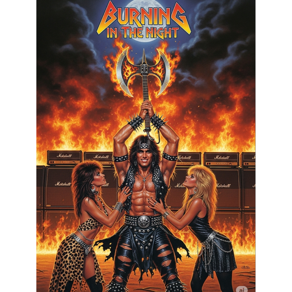 Early 80s LA Hair Metal, 80s Sleaze Rock, 80s German Power Metal, 80's Heavy Metal, Raspy Powerful Vocals, Massive Guitars, Headbanging, Fists in the air feel, Slight Boogie basslines, Mid 80s German Heavy Metal | Early 80s NWOBHM grit meets Teutonic steel | 145 BPM | Headbanging fists-in-air energy