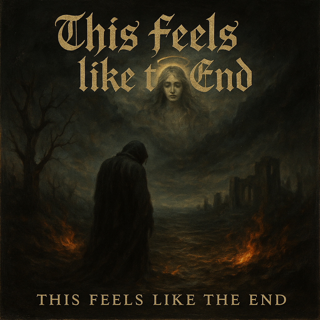 Epic doom metal ballad with atmospheric elements, Vocals are clean, dark, emotional, and theatrical storytelling flair, Drums are intense and expressive (fast tom fills, sharp kicks, dynamic pacing), Guitars are heavy, melodic, with slow-style doom riffs and precision, Ambient keys/pads for depth, Lyrics explore grief, longing, and finality — dramatic, sorrowful, epic in tone, Let the outro fade into bleak ambience, The chorus should feel like a doom anthem while verses remain atmospheric and intimate
