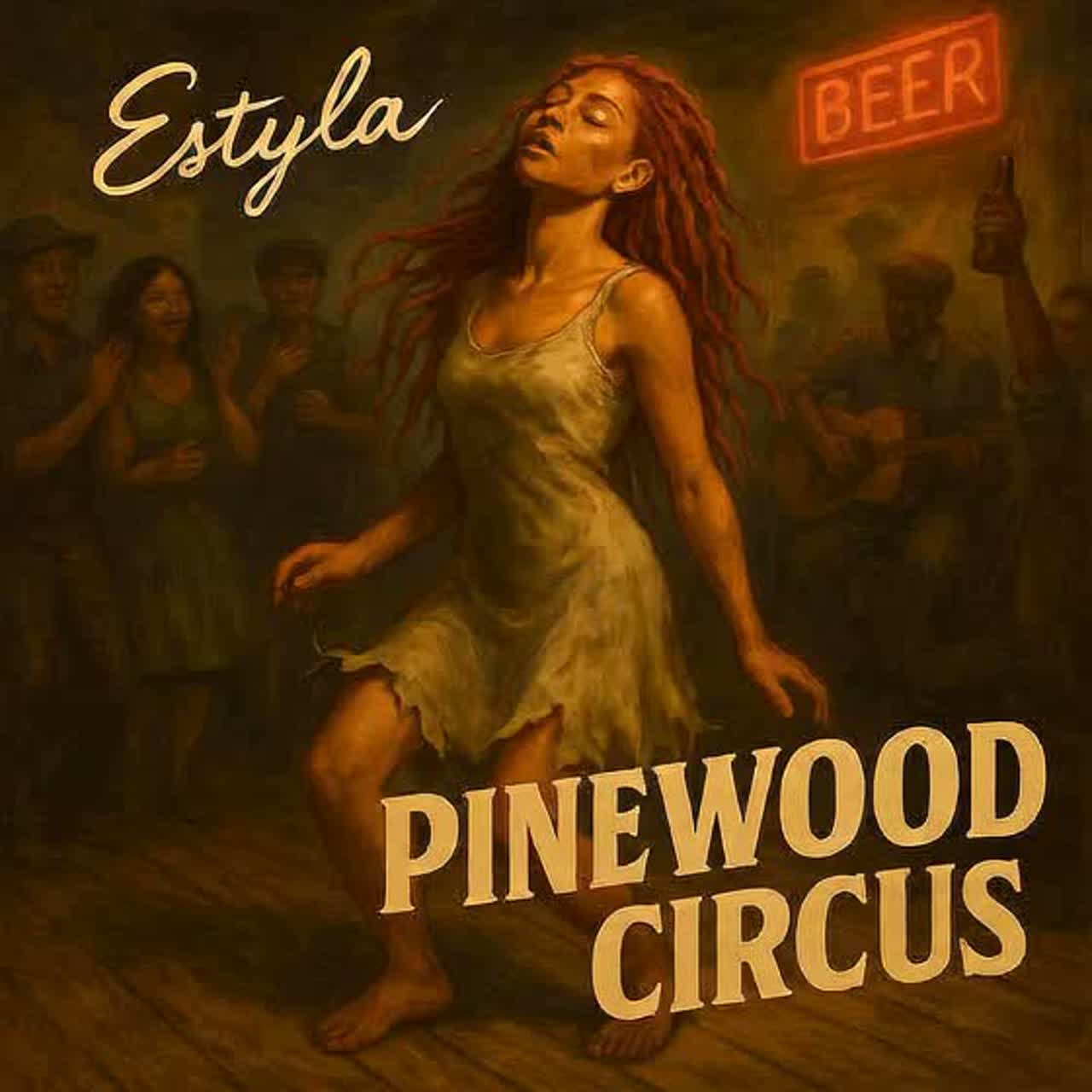 A detuned ukulele lays an off-kilter, dreamy foundation, gently fingerpicked, Soft female hums float above, blending into the texture, Subtle brush drums provide a delicate, swaying rhythm, keeping the atmosphere intimate and inviting, with minimalist pauses for breath
