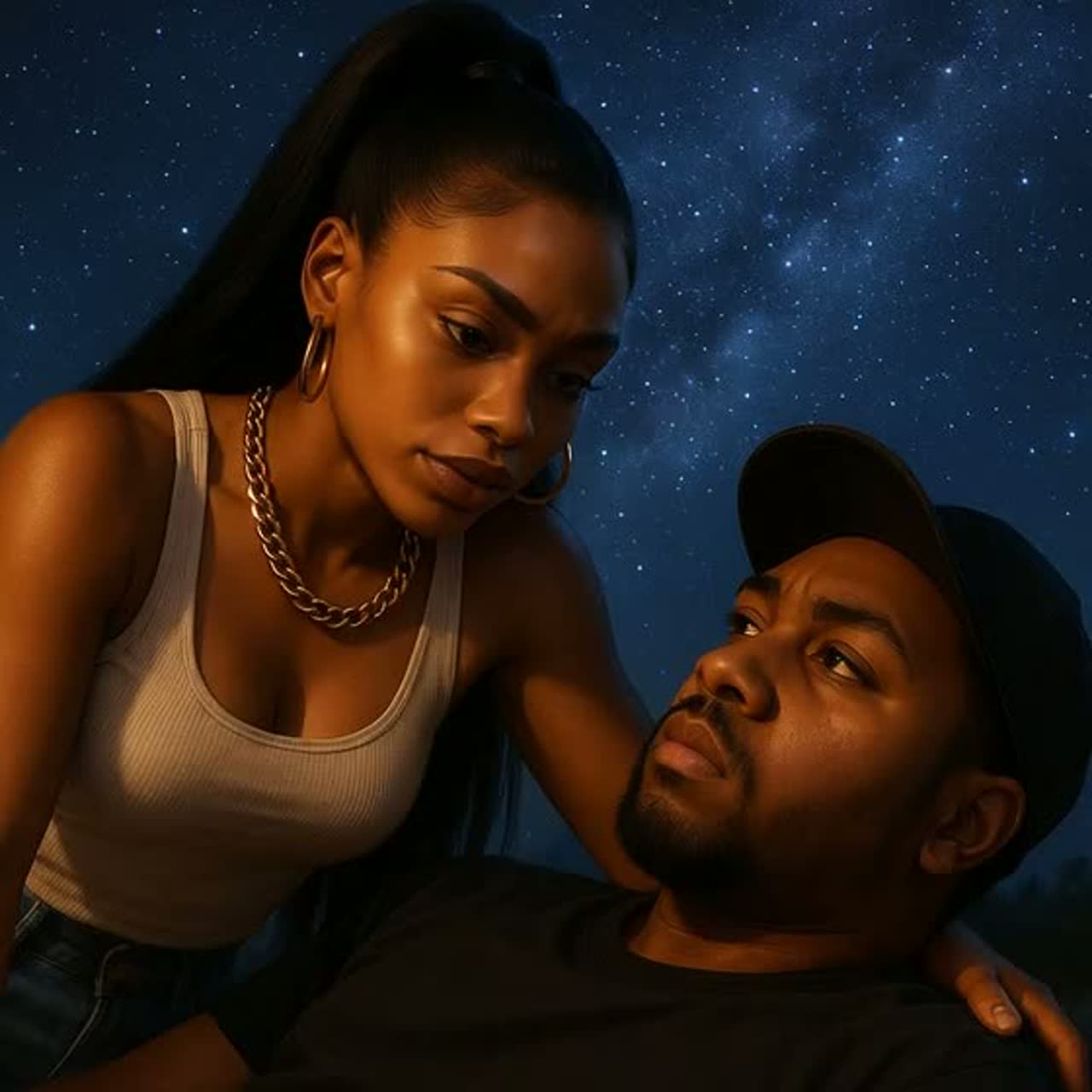 A brooding lo-fi intro sets the mood with deep electronic bass and eerie synth pads, Trap and drill-inspired 808s drive crisp, syncopated hi-hats, joined by polyrhythmic African percussion, Verses alternate smooth falsetto and agile female rap, layered with textured harmonies, Transitions use warped synth stabs and edgy effects, raising tension into an atmospheric, infectious pop chorus