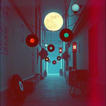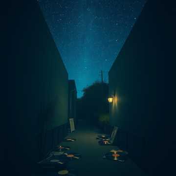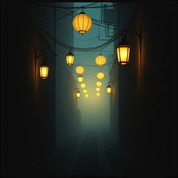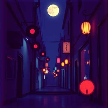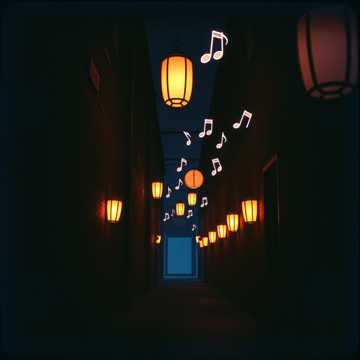 urban lo-fi hiphop beat with minimal drums and vinyl crackle, jazzy bassline, shamisen phrases, mysterious vibes, late night alley ambiance, faint koto textures