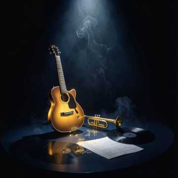 jazz guitar trio, fingerstyle jazz guitar, chamber strings, brushed snare, upright bass, warm tube preamp, ribbon mic capture, analog tape saturation, small hall reverb, 1950s studio sheen, lyrical swing phrasing, loose triplet feel, bittersweet nostalgia, moderate tempo, woodwind accents, muted trumpet, acoustic bass comping