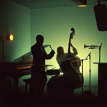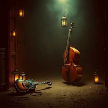 jazz, chamber folk, fingerstyle jazz guitar, orchestral string swells, brushed snare, upright bass, nylon-string arpeggios, muted trumpet, close mic recording, tape saturation, plate reverb, mono room ambience, warm analog compression, wistful longing, late-night swing, 92 BPM, syncopated stride feel