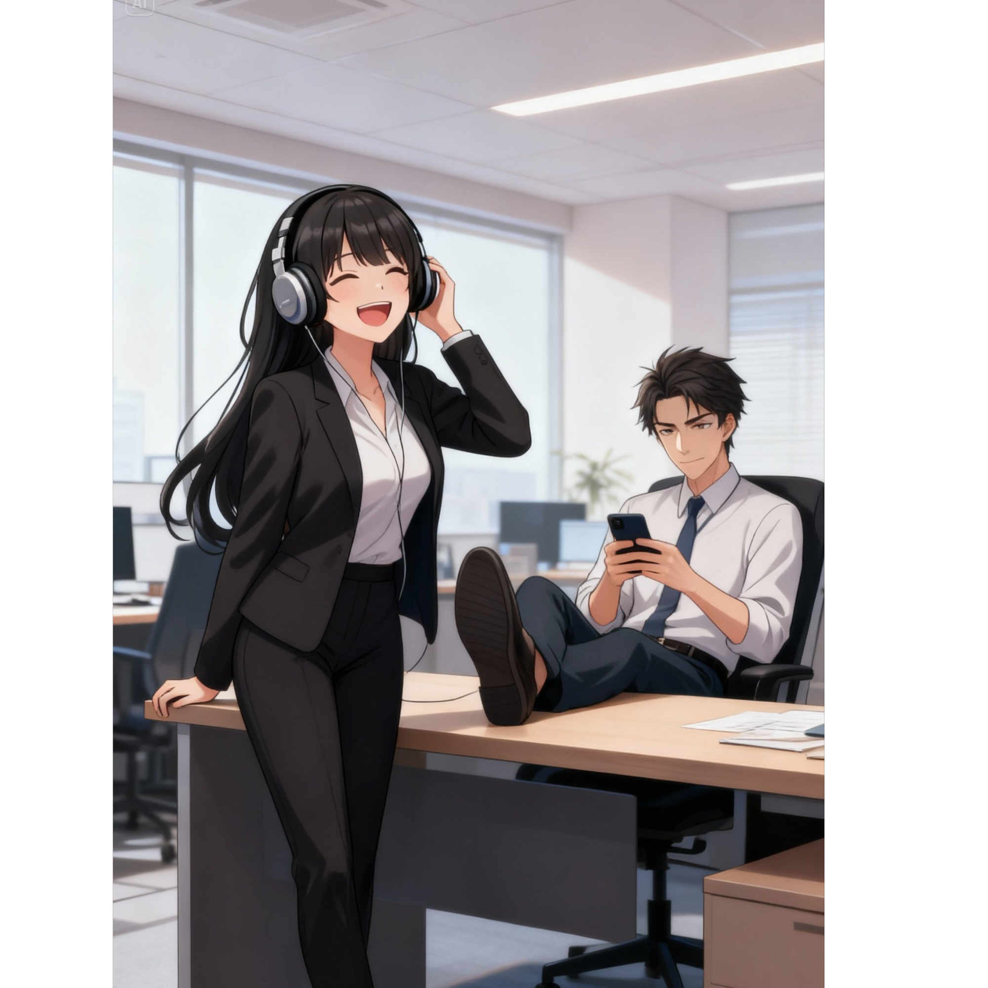 Rap track with a hype trap-style intro: heavy 808s, sharp hi-hats, punchy kicks, distorted bass, Background shouting and sarcastic ad-libs create a chaotic, mock-serious vibe—like a fake motivational rally, Fast rap bars delivered with exaggerated seriousness, but dripping with sarcasm, treating office grind like a ridiculous battlefield, Abrupt record scratch stop → switch into alternating male/female rap duet, Voices trade snarky, punchy lines: male voice deadpan serious, female voice sarcastic and witty, both mocking deadlines, coffee addiction, and pointless meetings, Mood: satirical, snarky, sarcastic—serious tone but funny content, poking fun at office absurdity, Performance arc: hype trap intro with sarcastic shouting → abrupt stop → alternating snarky male/female rap duet → witty back-and-forth banter → chaotic overlap → fade out with mock-heroic punchlines