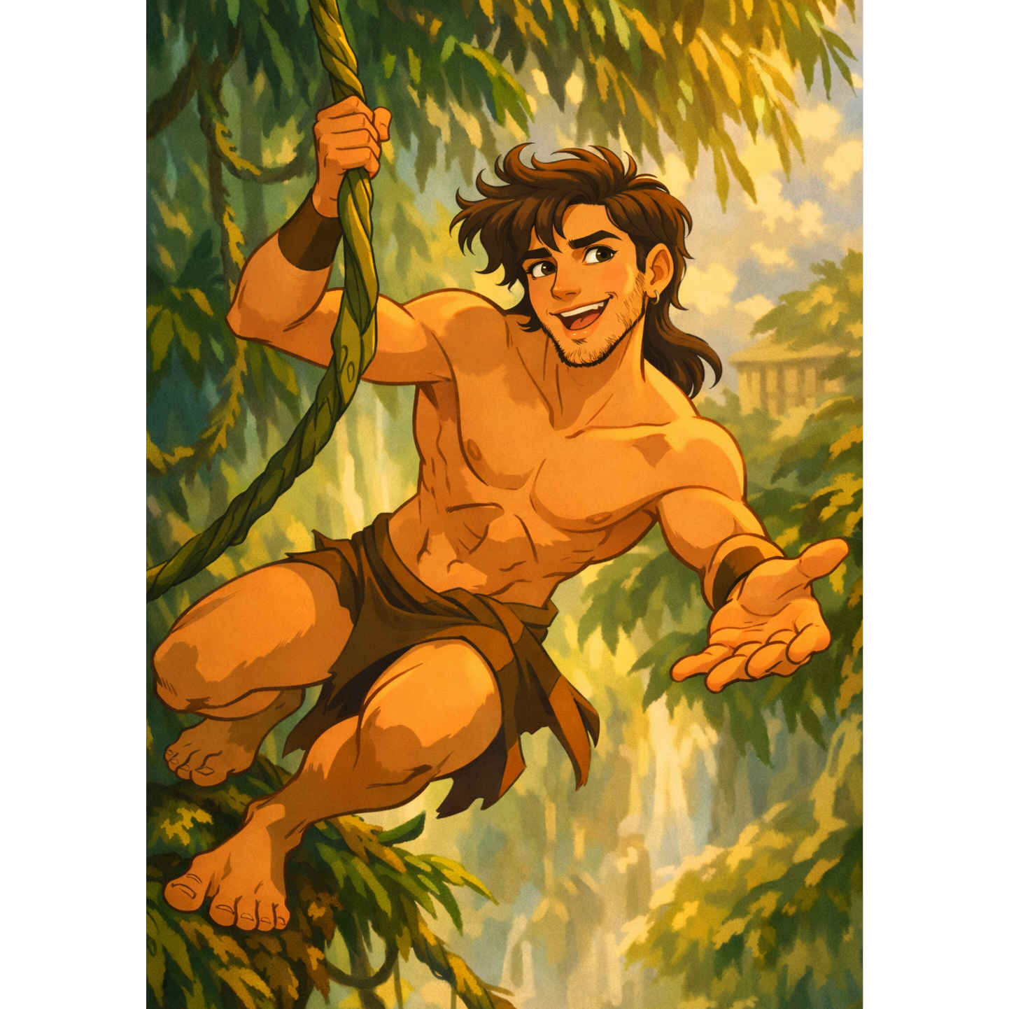 Epic Disney Tarzan–style animated song, emotional and uplifting, powerful male vocal, tribal drums and African rhythms, emotional choir, cinematic strings and percussion, strong emotional chorus, heroic yet tender, deep connection to nature and love, inspirational and heartfelt, classic 90s Disney animation energy, Spanish lyrics