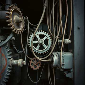 Dark cinematic industrial soundscape with pulsing machines, metallic ambience, echoing footsteps, and slow mechanical rhythms, Layers of synth noise, distorted bass, and atmospheric tension, Think Blade Runner meets Trent Reznor, Mood: futuristic decay, mechanical loneliness