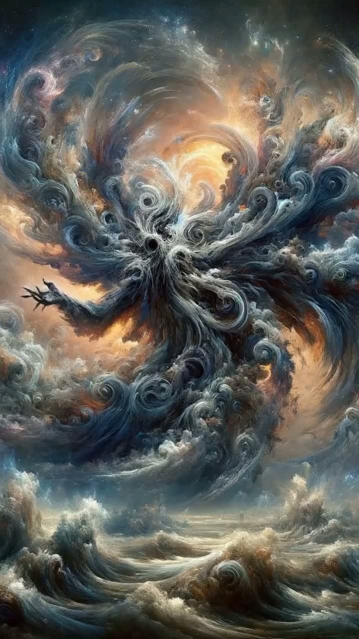Epic doom metal, atmospheric dark ambient, male clean deep baritone voice, powerful choir, orchestral elements, slow and heavy, ritualistic whispering intro, growling chorus, sound of deep ocean and storm, apocalyptic atmosphere, biblical theme, Hi-Fi