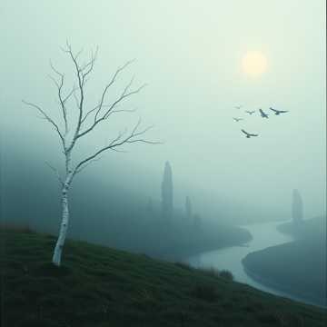 Airy, ancient-folk ballad with female vocals, high and fragile, Harp arpeggios and low wooden flute, faint choir swells under the chorus, Tempo slow, plenty of breath and silence between phrases; last chorus blooms with layered harmonies and a soft frame drum heartbeat