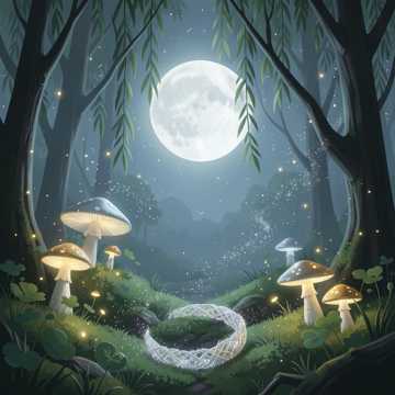 Ethereal folk-pop with shimmering harp arpeggios, breathy stacked female vocals, hand percussion like soft footfalls on leaf litter, and a rising chorus that blooms with strings and glockenspiel glints