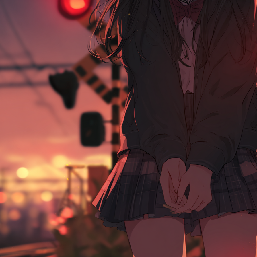 A warm Indie Rock × Bedroom Pop track painted in twilight tones, Clean guitars and short-reverb drums echo like a slow heartbeat near a train crossing, A natural female vocal grows emotional in each chorus, capturing the quiet tension before saying goodbye as the crossing bell fades a tone lower