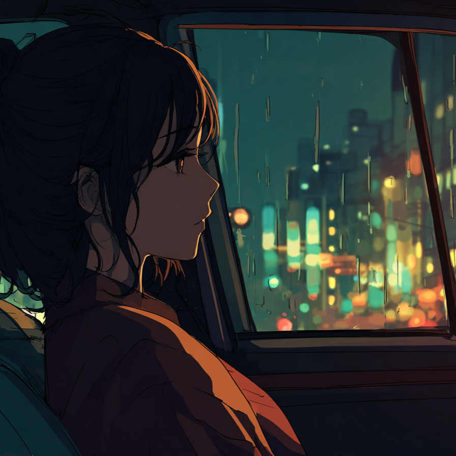 A Lo-Fi Ballad × Indie Pop arrangement with an intimate, late-night mood, Female vocal stays close and fragile, layered with subtle reverb and soft tape hiss, Felt piano chords, acoustic guitar picking, and a minimal drum loop form the core, while lo-fi textures and ambient noise echo a solitary taxi ride after a painful farewell