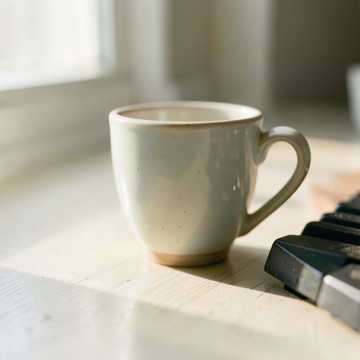 Instruments: warm acoustic piano (main), soft upright bass (minimal), brushed jazz drums (very light), gentle ambient pad, subtle strings texture, Structure: start immediately with delicate piano motif, clear flow: Theme A → soft variation → Theme B → development → piano improvisation break → return theme → soft outro, extend sections for ~4 minutes, Performance: very delicate touch, clear melody, smooth phrasing, avoid dense playing, focus on precision and softness, natural dynamics, Mood: soft hands moving in warm sunlight, quiet and focused, calm and intimate, cozy spring workspace, peaceful and gently immersive