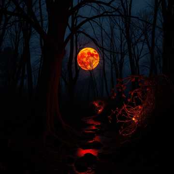 dark ritual folk, cinematic folk-metal, bowed sitar, frame drum ensemble, hand percussion, low drone synth, cathedral reverb, tape saturation, sparse intro, gradual layering, chantlike percussion, modal minor harmony, ceremonial pulse, eerie atmosphere, slow build, 72 BPM, wide stereo field