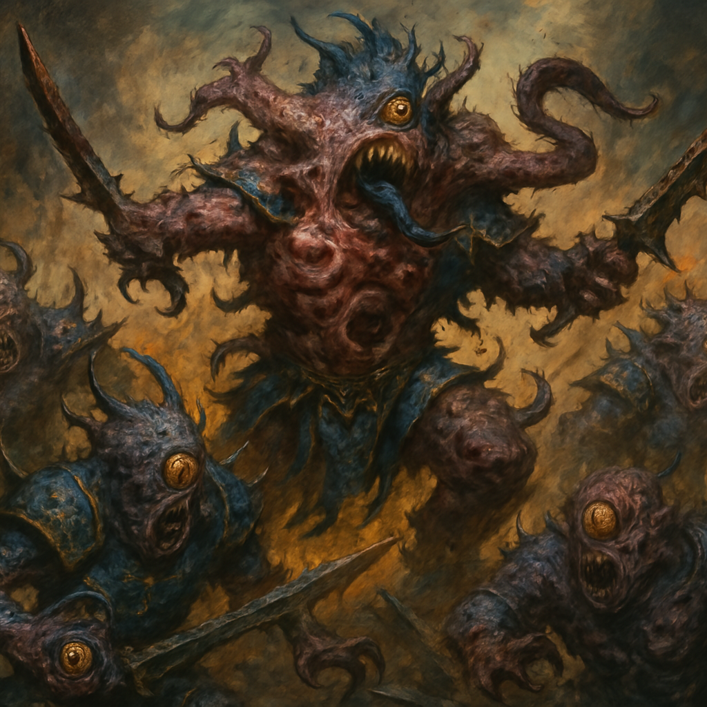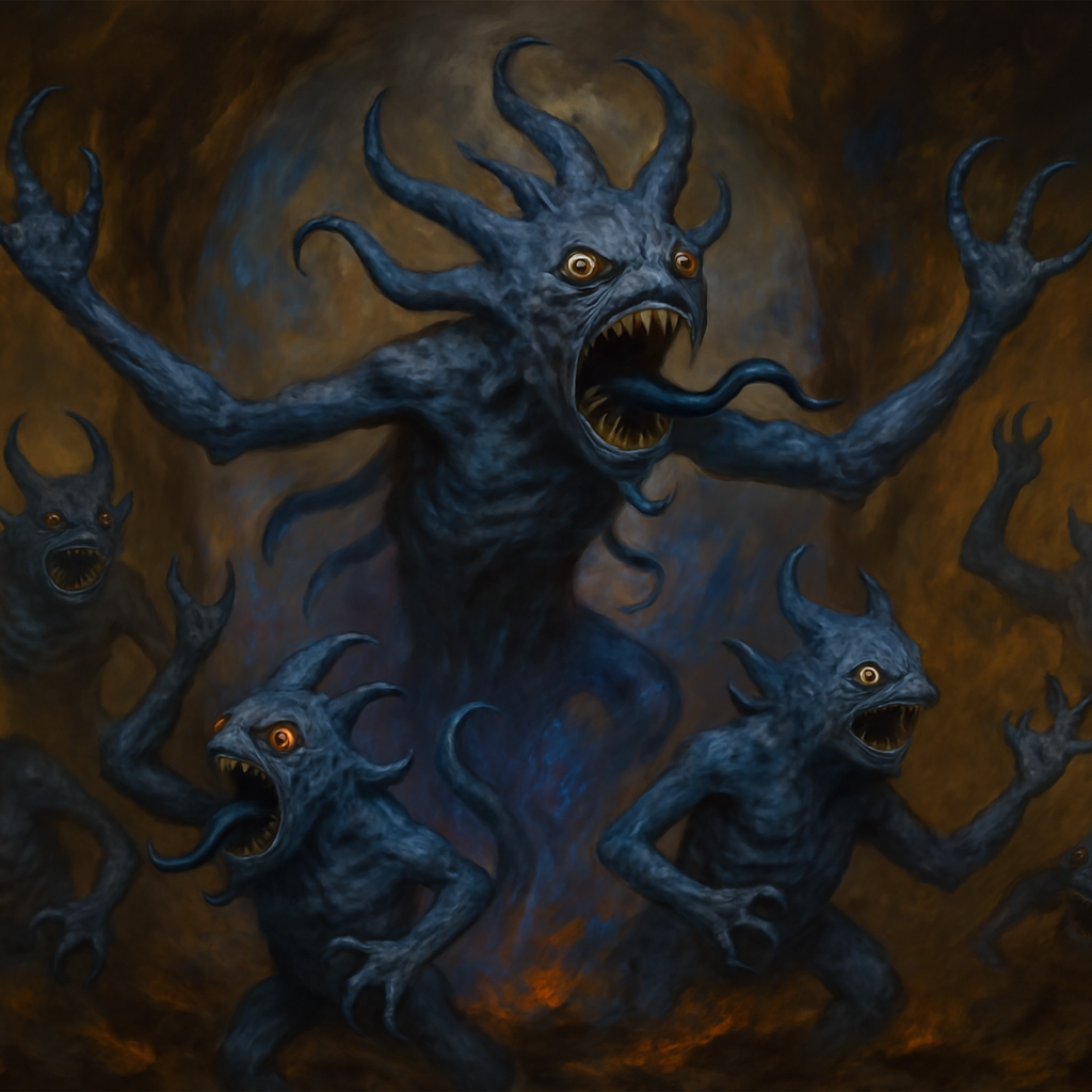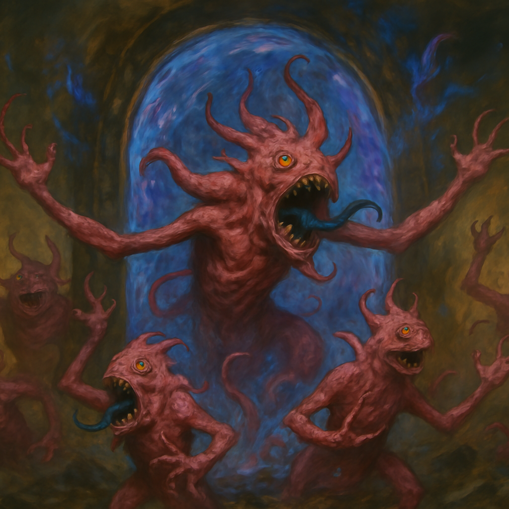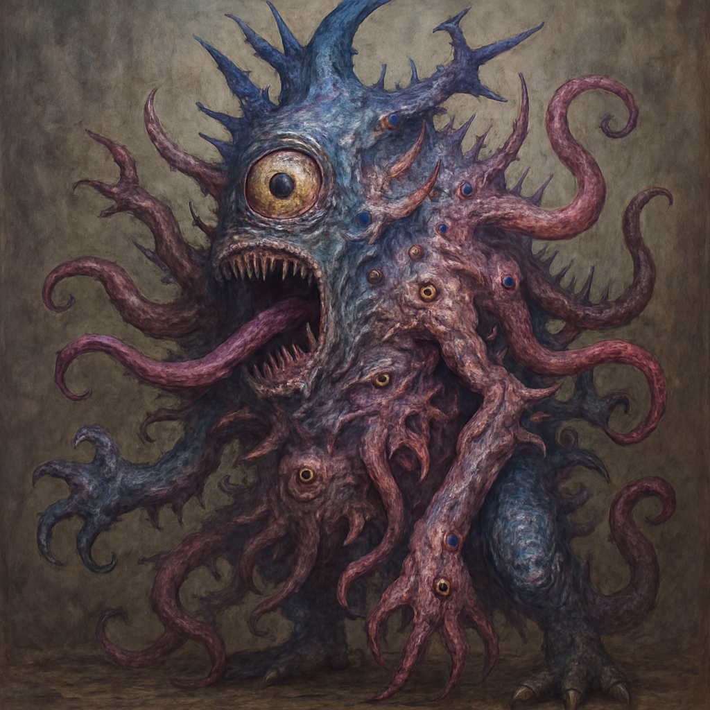 Dark ambient, progressive metal, cosmic horror, Haunting synths, dissonant strings, irregular rhythms, ritualistic chants, warped instruments (theremin, sitar), deep brass, and reversed audio effects