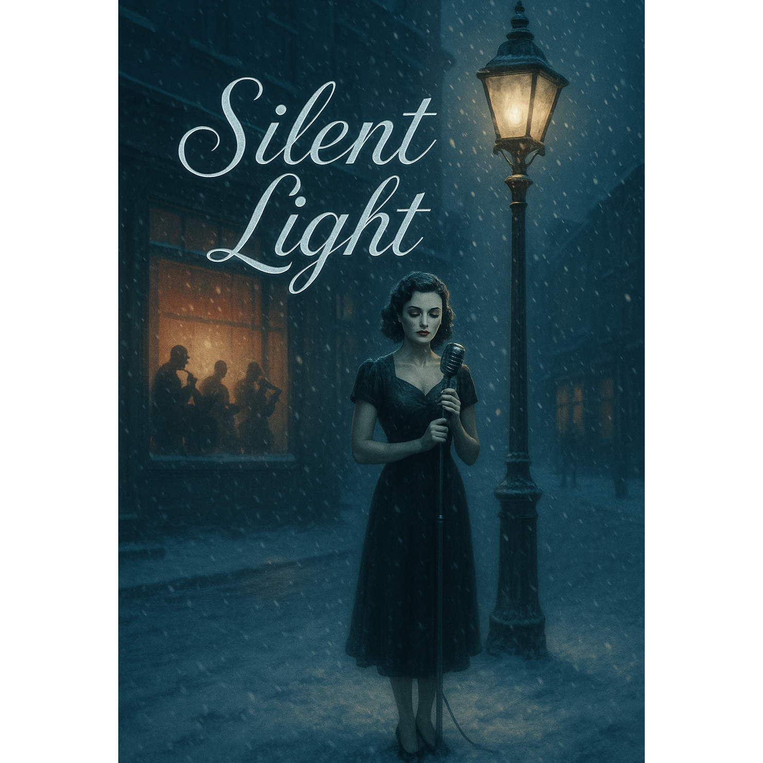 A Gothic Rock Christmas ballad with 1950s swing and twist influences, blending dark romanticism and retro holiday charm, The tempo is moderate with a vintage groove — upright bass walking beneath brushed drums and gentle guitar twang, Clean electric guitars shimmer with spring reverb, evoking 50’s surf tones fused with gothic melancholy, Subtle organ chords and soft bells enhance the winter mood without overpowering it, Female lead vocals carry warmth and depth, rich with vintage vibrato and emotional restraint, balancing sweetness and darkness, Background harmonies echo like a haunted choir, The extended solo blends slow swing phrasing with echoing tremolo guitar, leading into a delicate reprise, The mix feels nostalgic yet mysterious — a smoky winter waltz where noir elegance meets holiday twilight
