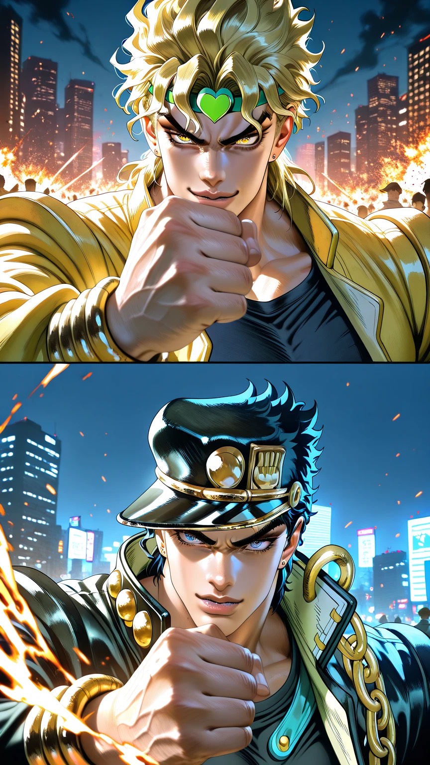 High-energy J-Rock and anime opening style track featuring aggressive electric guitars, driving double-kick drums, and powerful male vocals, The song opens with a shredding guitar solo utilizing rapid alternate picking and wah-wah effects, The verses feature palm-muted power chords and a melodic bassline, while the choruses explode with soaring vocal melodies and lush synth layering, The tempo is fast, approximately 180 BPM, in a minor key with frequent use of power chords and dramatic transitions, Production is polished with heavy compression on the drums and a wide stereo field for the guitars, The bridge includes a technical guitar solo with tapping and sweep picking before returning to a final, intensified chorus
