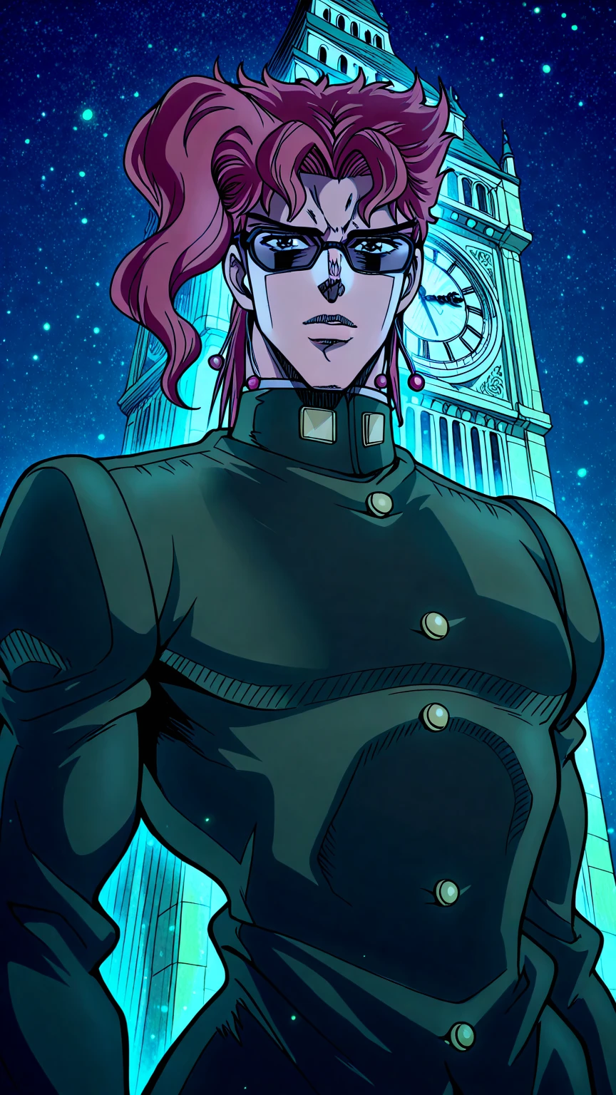 1980s Japanese City Pop, Dark Synth-pop, Cool & Edgy Male vocal, Sophisticated, Eerie, Suspenseful, Cinematic Dramatic transitions, Aggressive Deep bassline, Crunchy Electric Guitar riffs, 80s analog synth, Polished Production