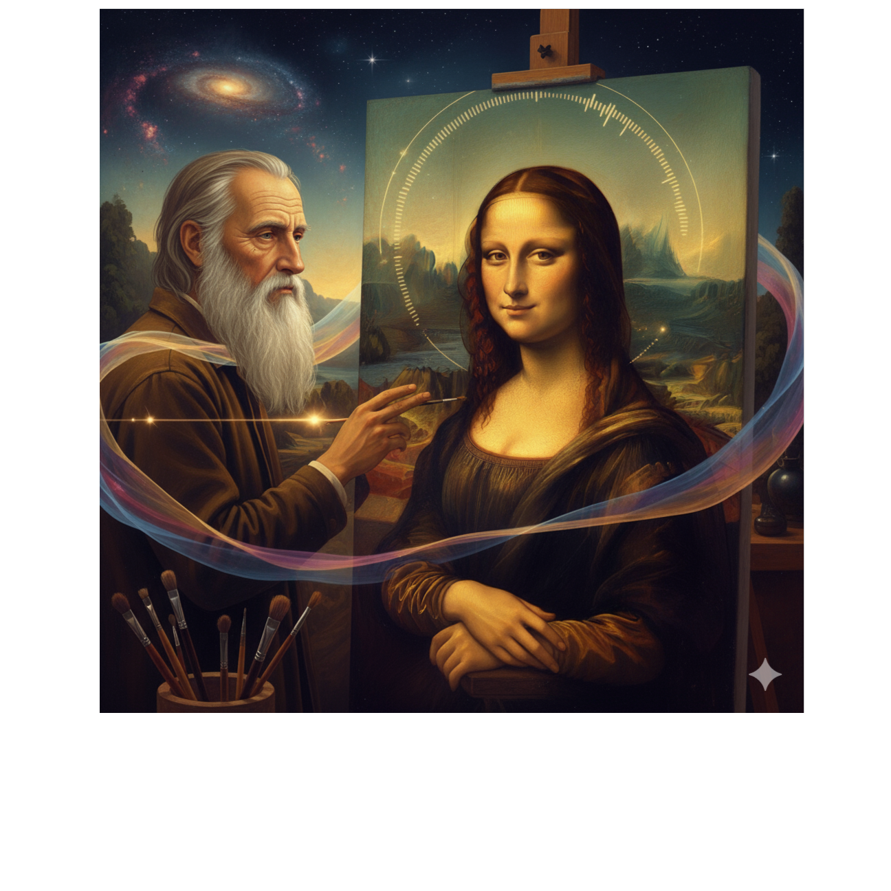 Produce a **7-minute cinematic indie pop duet** (female + male) with **maximum audio fidelity, rich emotional depth, and strong Hook & rhythm**, Female: strong, expressive vocals with subtle falsetto; Male: tender yet powerful, emotional peaks, falsetto transitions, Duet harmonies, doubles, ad-libs, Instruments: warm synth pads, dynamic piano, plucked/sustained strings, subtle bells, ambient textures, minimal groovy percussion, cinematic FX, Dynamics: intro → verse → pre-chorus → chorus → bridge → final chorus → extended outro, Chorus: addictive micro-Groove, rhythmic Hook, Stems: LeadFemale, LeadMale, Harmonies, Doubles, Piano, Pads, Strings, Bells, Percussion, FX, SubBass, MixBus, stereo master, Master: -7 LUFS, full dynamic range, pristine stereo imaging, Goal: **timeless, cinematic, emotional duet capturing Mona Lisa and Da Vinci, fully expressive, artistically rich, high-end sound, and naturally addictive**