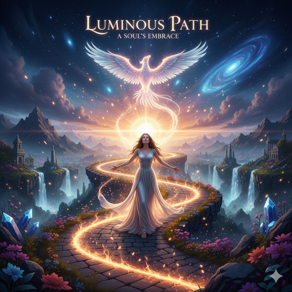 Epic Pop Rock Power Ballad, BPM 118, Intimate female vocal, wide dynamic range, layered harmonies, breathy close-mic whisper, Mixing: Billboard-level, -8 LUFS, wide stereo, crystal highs, thunderous low end, cinematic reverb, subtle vocal compression, Instrumentation: grand piano (emotional, reverb-heavy), distorted electric guitars (anthemic riffs), lush orchestral strings, deep resonant bass, heavy cinematic drums, atmospheric synth pads, Structure: soft intimate verse → tension pre-chorus → explosive chorus → second verse with momentum → stronger pre-chorus → ultimate climax chorus → bridge with close-mic piano + whisper vocal, emotional guitar solo → outro fade with piano, pads, mystical ending, Mood: Cinematic, Dreamy, Cathartic, Triumphant, Mystical, Theme: resilience, healing, inner strength, eternity, hope