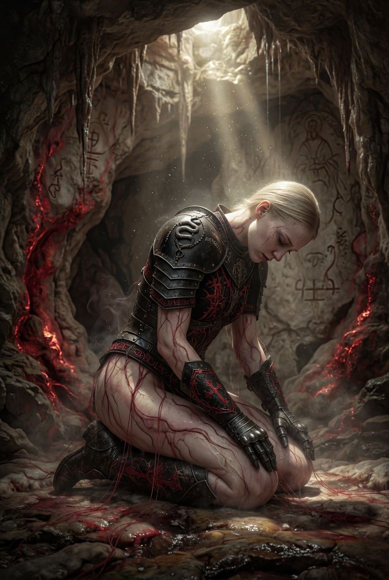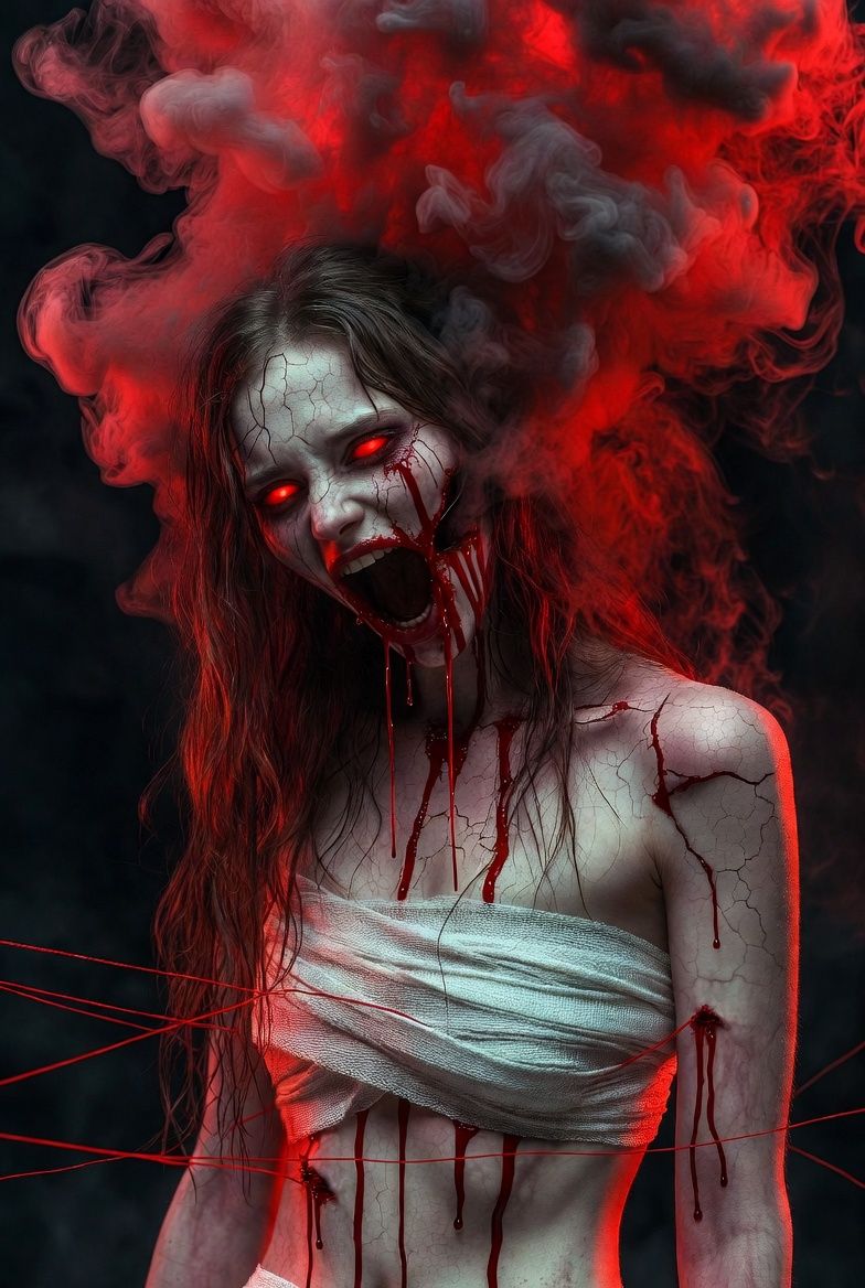 Cinematic metal with seductive craving relapse and atmospheric horror groove, Drop C, 72 BPM dreamy intro, 78 BPM verses, 92 BPM chorus, 80 BPM nightmare guitar-style solo, 96 BPM Female metal-style rapid fire rap-style rap section, 86 BPM 5/4 bridge, 95 BPM final chorus fading to 68 BPM outro, In/This/Moment-style vocals with Maria/Brink-style commanding theatrical range — haunting seductive cleans slowly shifting to darker growls, John/5-style gothic nightmarish lead with melodic bends turning defiling, Controlled down tuned 7-string chugs with 808 subs, sidechain pump, high-pass clarity, atmospheric depth, Mastered -10 LUFS for cinematic space, Red thread relapse — you feel like heaven even when you’re sin
